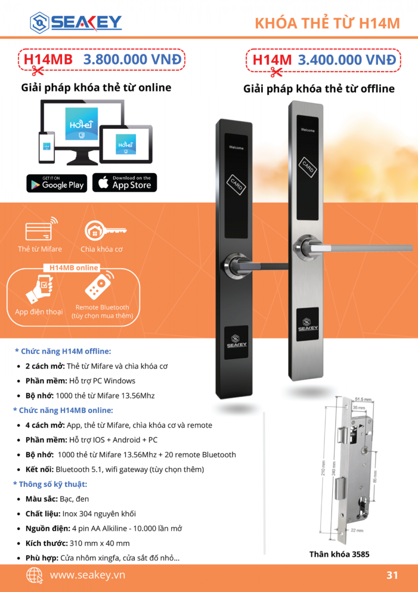 * THÔNG SỐ KỸ THUẬT KHÓA THẺ TỪ H14MB