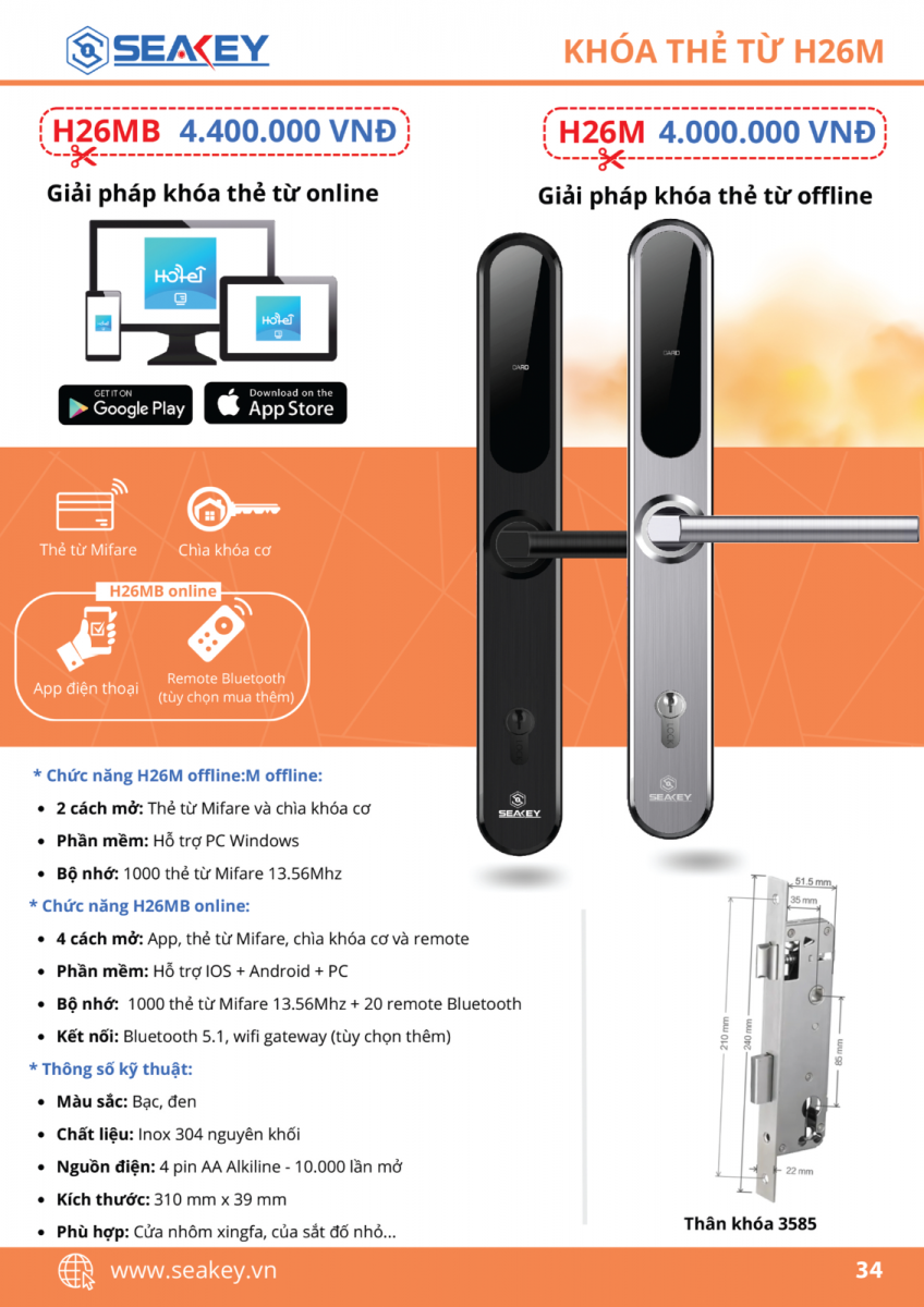 * THÔNG SỐ KỸ THUẬT KHÓA THẺ TỪ H26MB