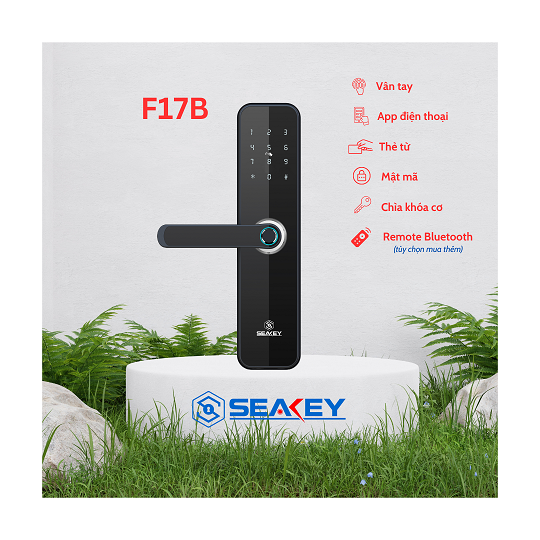 Khóa vân tay Seakey C17B là dòng khoá cửa điện tử sử dụng cho cửa gỗ , cửa sắt đố cửa nhỏ, cửa thông phòng với 6 tính năng mở khoá hiện đại: App, vân tay, mã số, thẻ từ, chìa khóa cơ chống sao chép và remote (tùy chọn mua thêm)